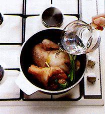 Выньте мясо из миски, добавьте в бульон и варите в течение 2 минут. Достаньте мясо и прикройте, чтобы оно оставалось теплым. Положите огурцы в кастрюлю и вновь прокипятите. Уменьшите огонь до малого, добавьте баранину и уксус и готовьте в течение 4 минут.