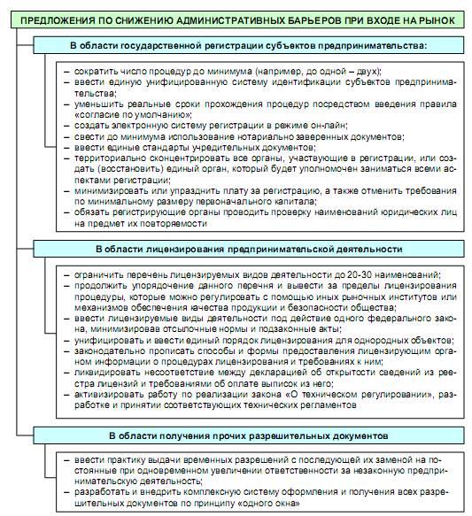 С целью снижения административных барьеров исследователями рекомендуется законодательно определить данное понятие и обратить, прежде всего, внимание на реализацию мер, направленных на упрощение выхода на рынок субъектов предпринимательства (рис. 1).