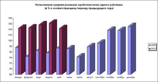 Реальная заработная плата — это номинальная заработная плата с учетом движения розничных цен (и тарифов). Так, повышение номинальной заработной платы на 15% при росте уровня розничных цен на 10% дает прирост реальной заработной платы на 5%. Номинальная заработная плата может повыситься, а реальная понизиться, если цены на товары и услуги растут быстрее, чем номинальная заработная плата. Реальная начисленная заработная плата в России одного работника в % показана в приложении А.