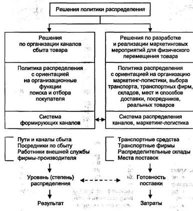 Политика распределения - совокупность и направление действий по разработке и реализации комплекса маркетинга (распределительного микса), входящих в этот комплекс действий и oпeраций по доведению продукта до конечного потребителя (рис. 1.4).