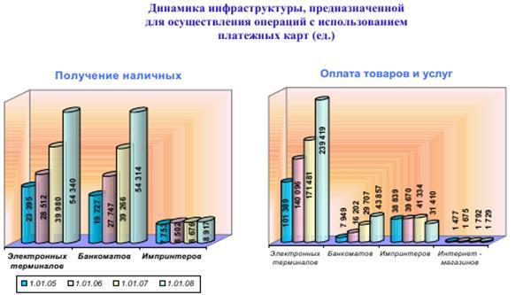 Развитие карточной индустрии обеспечивает повышение прозрачности финансовых операций, прирост налоговых поступлений, существенно снижает издержки, связанные с обслуживанием наличного денежного оборота, ведет к увеличению объема привлеченных денежных средств в банковскую сферу и, соответственно, кредитных возможностей банков, а также во многом способствует активному развитию смежных сфер деятельности, таких как производственная, социальная и сфера занятости [31].