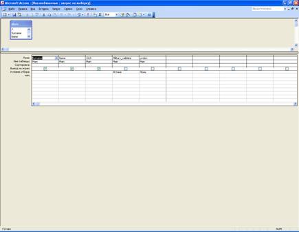 6. Запрос на выборку работников, находящихся в указанный период в отпуске (рис. 4.11).