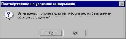 Для того чтобы удалить и базы информацию о сотруднике, необходимо нажать кнопку "Удалить сотрудника / штатную единицу". Появится вопрос (рис. 4.16):