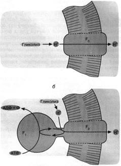 и fj), действуя в обратном направлении, способна катализировать вместо синтеза АТФ пиролиз АТФ, сопряженный с откачкой ионов Н+