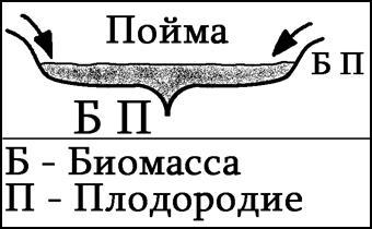 Почвы пойменные (аллювиальные) богаче, чем почвы сопредельных водораздельных территорий. Разница 1,5 – 2,5 раза. (П) – показатель плодородия – урожай, (Б) – биомасса.