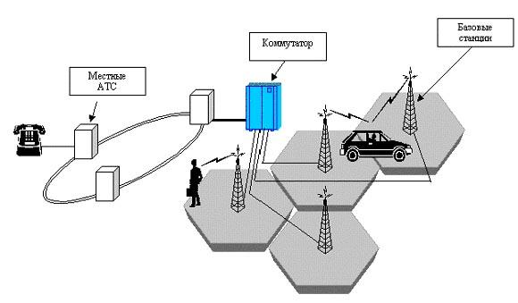 Мобильная связь - это любая радиосвязь, позволяющая абоненту пользоваться ею без привязки к конкретному месту: сотовая, транковая (или транкинговая), пейджинговая, радиотелефоны, радиоудлинители, рации и т.д. Сотовая связь - разновидность мобильной связи, организованная по принципу сот или ячеек (cells), путём размещения базовых станций (БС) (Base Transceiver Station), которые покрывают локальную территорию. Совокупность локальных территорий составляет зону обслуживания (ЗО) Оператора. Уровень сигнала в конкретном месте зависит от близости к БС, рельефа местности, застройки, индустриальных помех и других факторов. Сигнал с БС передаётся на коммутатор и обрабатывается им.