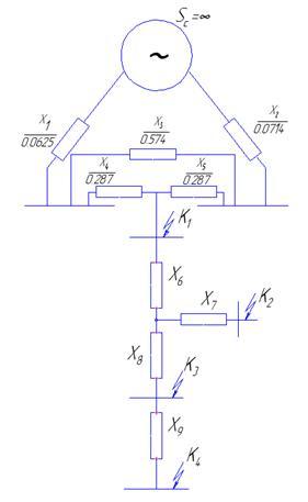 Представление сопротивлений при расчете токов к.з. – в относительных единицах;