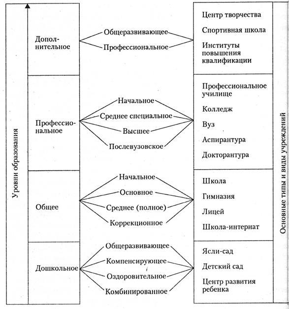 - начального, среднего, высшего и послевузовского профессионального образования;