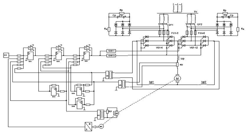 Полная структурная схема системы подчиненного управления приведена на рисунке 1.9, функциональная схема на рисунке 1.10.