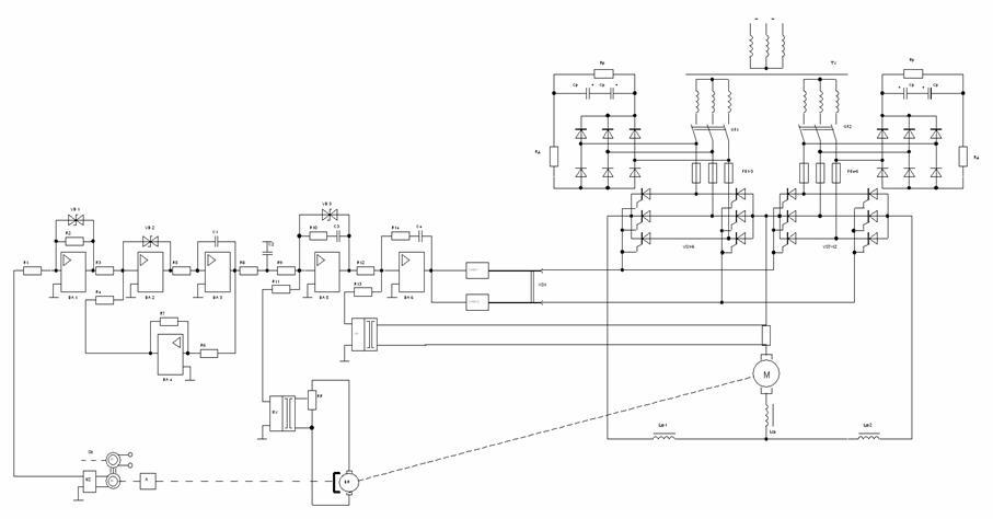 Функциональная схема регулятора скорости такая же, как и регулятора тока, с той лишь разницей, что регулятор скорости формирует задание на регулятор тока.