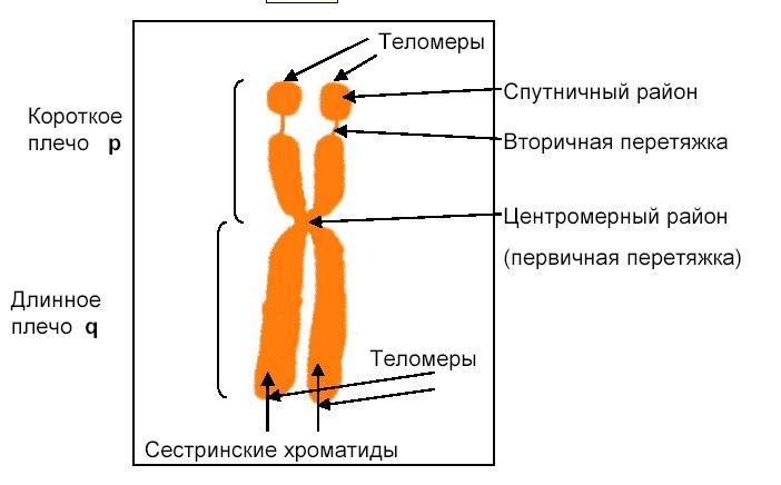 – это участок «нормальной» хромосомы за вторичной перетяжкой. Вторичная перетяжка и соответственно спутник есть далеко не на всех хромосомах, поэтому они помогают их идентифицировать.)