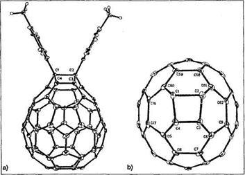 у будь-якому випадку залишаються основними серед продуктів із замкнутим вуглецевим каркасом. Якщо синтез проводиться в електростатичному полі, то фулерени, які утворюються, можна згодом виділити майже виключно з сажи, яка осідає в областях, близьких до катода. Це дає вагомі підстави стверджувати: катіони як проміжні продукти грають якусь роль в ланцюзі реакцій, що приводять до фулеренів. Нарешті, газоподібний С60