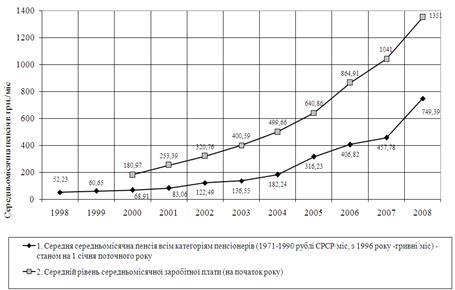 3.1 Динаміка зростання рівня пенсій та обсягів загальнодержавних пенсійних виплат в Україні