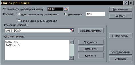 В такой постановке одно из уравнений системы (любое) выступает как целевая функция, а два других как ограничения. После щелчка на кнопке ОК