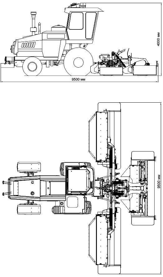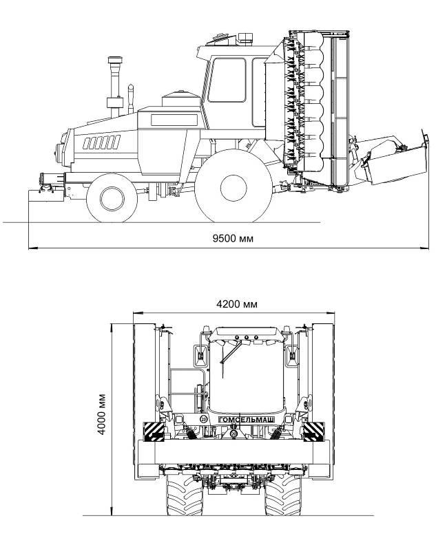 Габаритные размеры косилки, в рабочем положении