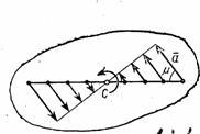 Так как w и имеют в данный момент времени для всех точек тела одно и то же значение, то ускорения всех точек вращающегося твердого тела пропорциональны их расстояниям от оси вращения и образуют в данный момент времени один и тот же угол с радиусами описываемых ими окружностей. Поле ускорений точек вращающегося твердого тела имеет вид, показанный на рис.14.
