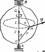 2. Векторы скорости и ускорения точек тела. Чтобы найти выражения непосредственно для векторов v и а, проведем из произвольной точки О оси АВ радиус-вектор r точки М (рис. 14). Тогда h=r sin а и по формуле