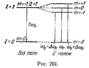 за счет столкновения атома с достаточно быстрым электроном, или, наконец, за счет поглощения атомом фотона. Фотон при поглощении его атомом исчезает, передавая атому всю свою энергию. Атом не может поглотить только часть фотона, ибо фотон, как и электрон, как и  Рис.5 другие элементарные частицы, является неделимым. Поэтому атом может поглощать только те фотоны, энергия которых в точности соответствует разности энергий двух его уровней. Поскольку поглощающий атом обычно находится в основном состоянии, спектр поглощения водородного атома должен состоять из линий, соответствующих переходам 1s np (n = 2, 3, ...). Этот результат полностью согласуется с опытом. Собственные функции s-состояний (т. е. состояний с l = 0) оказываются не зависящими от углов и . Это можно записать следующим образом:  Вероятность найти электрон в тонком шаровом слое радиуса r и толщины dr согласно (66.1) равна . Выражение представляет собой плотность вероятности нахождения электрона на расстоянии r от ядра. Волновые функции для l, отличных от нуля, распадаются на два множителя, один из которых зависит только от r, а другой — только от углов и . Таким образом, и в этом случае можно ввести понятие плотности вероятности нахождения электрона на расстоянии r от ядра, подразумевая под R(r) ту часть функции , которая зависит только от r. На рис. 5 приведены плотности вероятности для случаев: 1) п = 1, l = 0; 2) п = 2, l = 1 и 3) п = 3, l = 2. За единицу масштаба для оси r принят радиус первой боровской орбиты. На графиках отмечены радиусы соответствующих боровских орбит. Как видно из рисунка, эти радиусы совпадают с наиболее вероятными расстояниями электрона от ядра. |