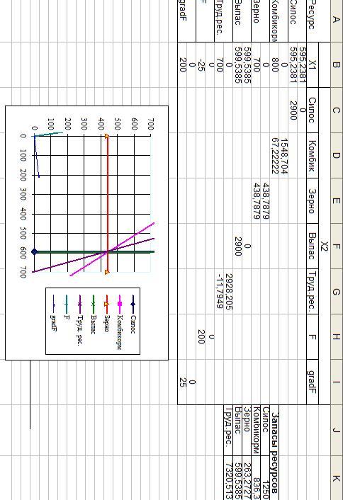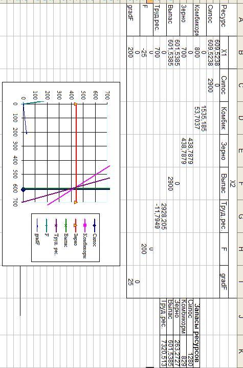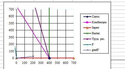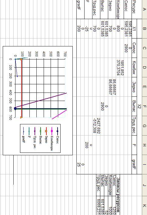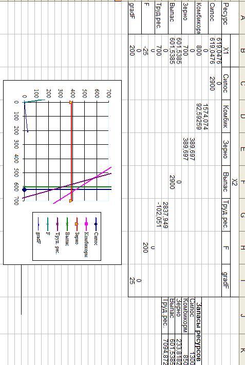 находятся значения, характеризующие запасы ресурсов, то при каждом изменении запасов ресурсов, мы вводим в эти ячейки обновленные данные и получаем решение графическим методом.