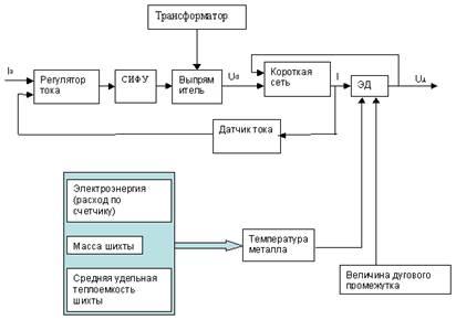 На основании проведенных исследований была разработана система управления дуговой плавильной печью постоянного тока мощностью 9600 МВА (рис.11).