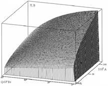 , приведенные на рис. 2 б, в, г иллюстрируют качественные и количественные изменения напряжения на дуге при изменении технологического режима. В частности, при увеличении среднемассовой температуры шихты напряжение на дуге постепенно уменьшается. Указанные зависимости были положены в основу разработанной многомерной модели, учитывающей характеристики дуги постоянного тока.
