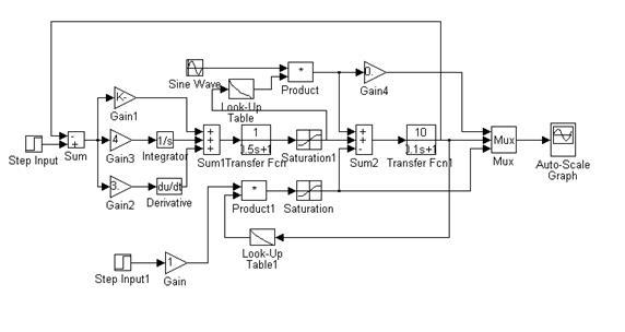 Исследования проводились на основе метода структурного моделирования с использованием пакета прикладных программ SIMULINK. На рис.7 приведена блок-схема модели, позволяющая в диалоговом режиме проводить анализ и синтез системы для различных режимов и параметров конкретной установки.