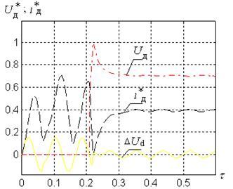 Для получения обобщающих закономерностей, применимых для класса дуговых печей различной мощности, в работе предложено использовать систему относительных величин, в которой за базовое время принято частота питающей сети, за базовое напряжение номинальное значение выпрямленного напряжения, а за базовый ток – номинальный ток печи.