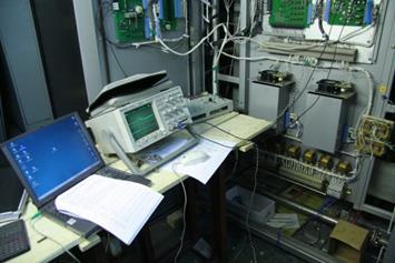 Рис. 10. Общий вид (а) и осциллограммы (б), снятые на стенде для испытания источника тока дуговой печи
