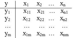 Такие таблицы формируются в ходе эксперимента для реальных объектов, у которых есть одна выходная переменная (отклик), которая зависит от нескольких выходных переменных (факторов).