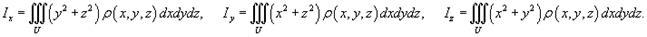 Моменты инерции оболочки относительно осей Ox, Oy, Oz