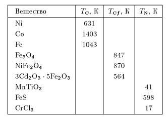 Таблица 12.1. Температуры фазовых переходов в ферромагнитное Тс, ферримагнитное Тс