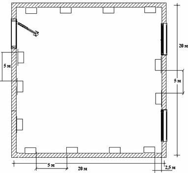 . Число автоматических извещателей, установленных в цехе, принимаются 270. Число ручных извещателей определяется удобством доступа, планировкой помещений и размерами цеха.