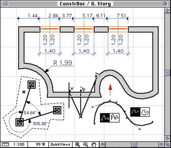 Он может точно определить ваше местоположение на плане и помогает правилно выровнять и разместить строительные элементы. Он также помогает при построениях, так как обозначает прямые углы, касательные, пересечения, узлы и линии построения. Все эти функции легко выучить и запомнить, они доступны на любой стадии проектирования и значительно облегчают работу над проектом. Система «прозрачна» для пользователя, ее реакции всегда отображаются на экране и они предсказуемы. Кроме того, ArchiCAD - хороший помощник, возможность «отката назад» на 99 шагов позволит исправить практически любую ошибку. Если, конечно, ее удастся вовремя заметить. Перед тем как начать выполнять особо продолжительные операции, ArchiCAD запрашивает дополнительное подтверждение.