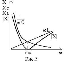 Затем графики зависимостей представляем на одном рисунке (рис.5). Указанные кривые пересекаются. Точка пересечения этих графиков означает, что при определенном значении частоты источника переменного
