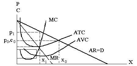. При совершенной конкуренции фирма, как правило, не может получить цену большую, чем равновесная. Монополия же имеет такую возможность, причем образуется целая зона (от x0