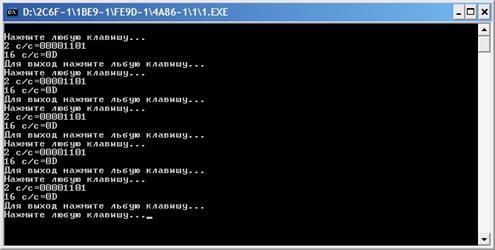 ah = 07h – Не фильтрующий ввод символа с клавиатуры с ожиданием без эха.