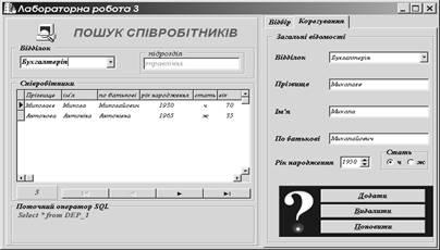 • фільтрації записів БД із виведенням на екран записів, обраних у діалозі за вказаними критеріями;