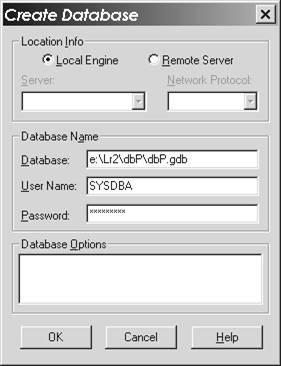• виконати команду File | Create Database … і у віконці, яке з’явилося (мал. 1.1), вказати наведені параметри (параметри можуть бути довільними);