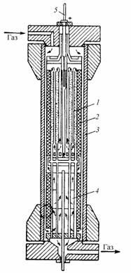 в присут. Ni-Al при 280°С и 2,6 МПа; 7) компримирование очищенного газа до 30 МПа и синтез аммиака на железном промотированном катализаторе при 420-500 °С. Реактор синтеза аммиака представлен на рис. 4.