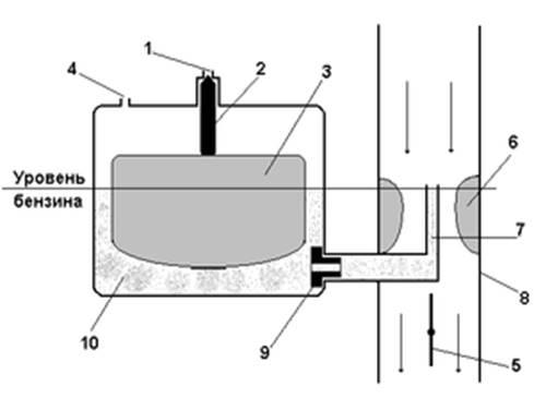 Схема простейшего карбюратора