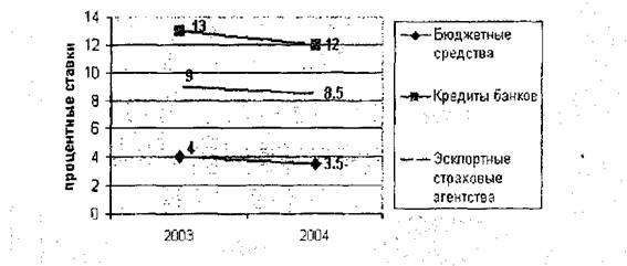 Рис.4. Минимальные ставки по лизингу в зависимости от источника финансирования