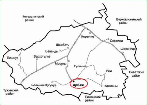 Территорию Арбажского района образуют территории 1 городского и 4 сельских поселений [2].
