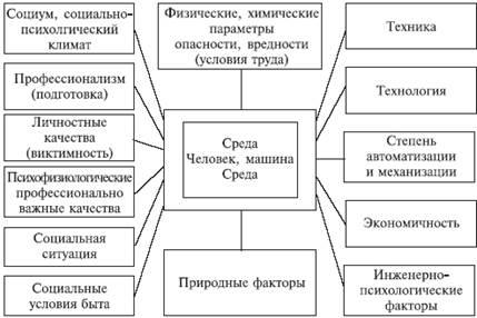 В целом сложная картина воздействий на человека, управляющего потенциально опасной техникой, представлена на рисунке 1.