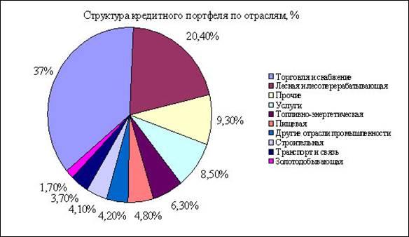 Наряду с ними постоянно увеличиваются объемы и виды кредитования среднего и малого бизнеса, представители которого осуществляют практически весь спектр производства товаров народного потребления и продуктов питания, оказания услуг и сервисного обслуживания, оптовой и розничной торговли. Малый и средний бизнес, занимающий лидирующие позиции в сфере торговли, услуг и производства отдельных товаров народного потребления и продуктов питания, занимает существенную часть в кредитном портфеле банка.