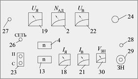 1. По вольтметру 30 (см. рис.6.1) установить задатчики нагрузки 28 и 29 в нулевое положение.