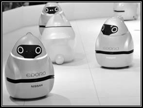 Машины научаться общаться друг c другом. Многие жертвы дорожных аварий умирают до поступления в больницу из-за невозможности вовремя доехать до больного или довести его до больницы. Улучшение работы служб неотложной помощи, начиная с места происшествия до медицинского учреждения, повышает шансы на выживание тех, кто попал в дорожно-транспортную аварию, и позволит избежать длительного лечения травм и инвалидности. Основу развития "общения машин", уже заложили разработчики из Nissan, поставив перед собой задачу, научить автомобиль эффективно и безопасно двигаться в потоке своих "сородичей". Вдохновившись искусным полетом шмеля, они представили в 2008 г. робот-автомобиль Biomimetic Car Robot Drive "BR23C". Продолжив наблюдать за живой природой, в которой конструкторы испокон веков черпали силы для творчества и находили готовые технические решения, японские инженеры создали концептуальный EPORO. Эту разработку, шесть симпатичных роботов, Nissan показал в 2009 г. на токийской выставке CEATEC JAPAN.