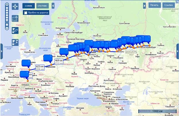 · расчёт расстояния транспортировки при использовании железнодорожного и автомобильного транспорта