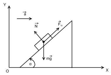 Решение: Запишем второй закон Ньютона в проекциях на оси ОХ и ОY инерциальной системы отсчета, связанной с Землей, считая, что кубик относительно клина покоится: