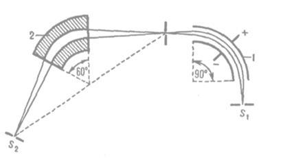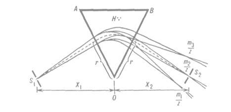мм рт. cm. у приладах із середньою й високою величиною R). Для ослаблення впливу розбросу по енергіях застосовують прилади з подвійним фокусуванням, які фокусують на щілину S2