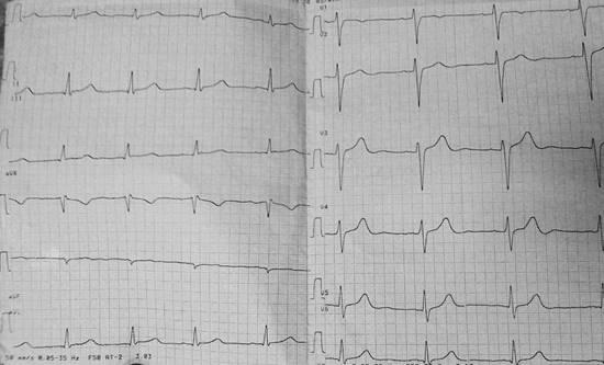Сердечные тоны ясные, ритм правильный, ЧСС=100 уд. в мин. ЧП 100 уд. в мин., умеренного наполнения и напряжения; симметричен на обеих руках; АД – 110 / 79 мм рт. ст.